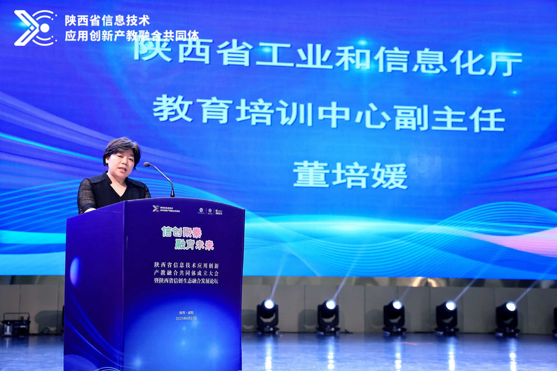 陕西省工业和信息化厅教育培训中心副主任董培媛、咸阳市工业和信息化局副局长陈晓莉分别作了讲话。表示共同体将紧密围绕陕西省信创产业发展战略,充分发挥各成员单位优势,搭建高效务实的合作平台,为培育壮大陕西信创产业集群提供强有力的人才支撑和技术服务。