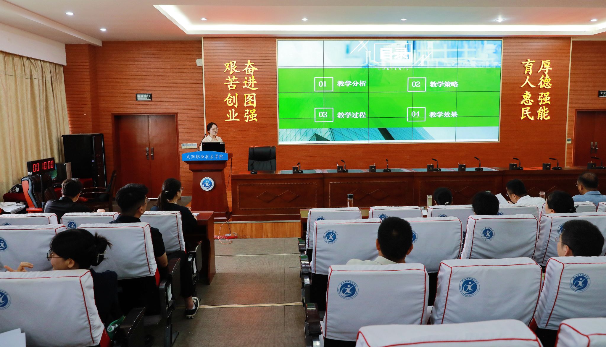 本次新入职教师教学能力测试于今年5月启动,经过各二级学院初选,35名新教师进入第一阶段随堂测试。通过“讲课”形式的严格考察,最终11名教师脱颖而出,参与集中展示。活动现场,11位新教师围绕多个专业核心课程,依次进行10分钟的说课展示。他们凭借扎实的专业功底,创新教学设计,突出教学重点,充分展现出新时代青年教师的教学风采。