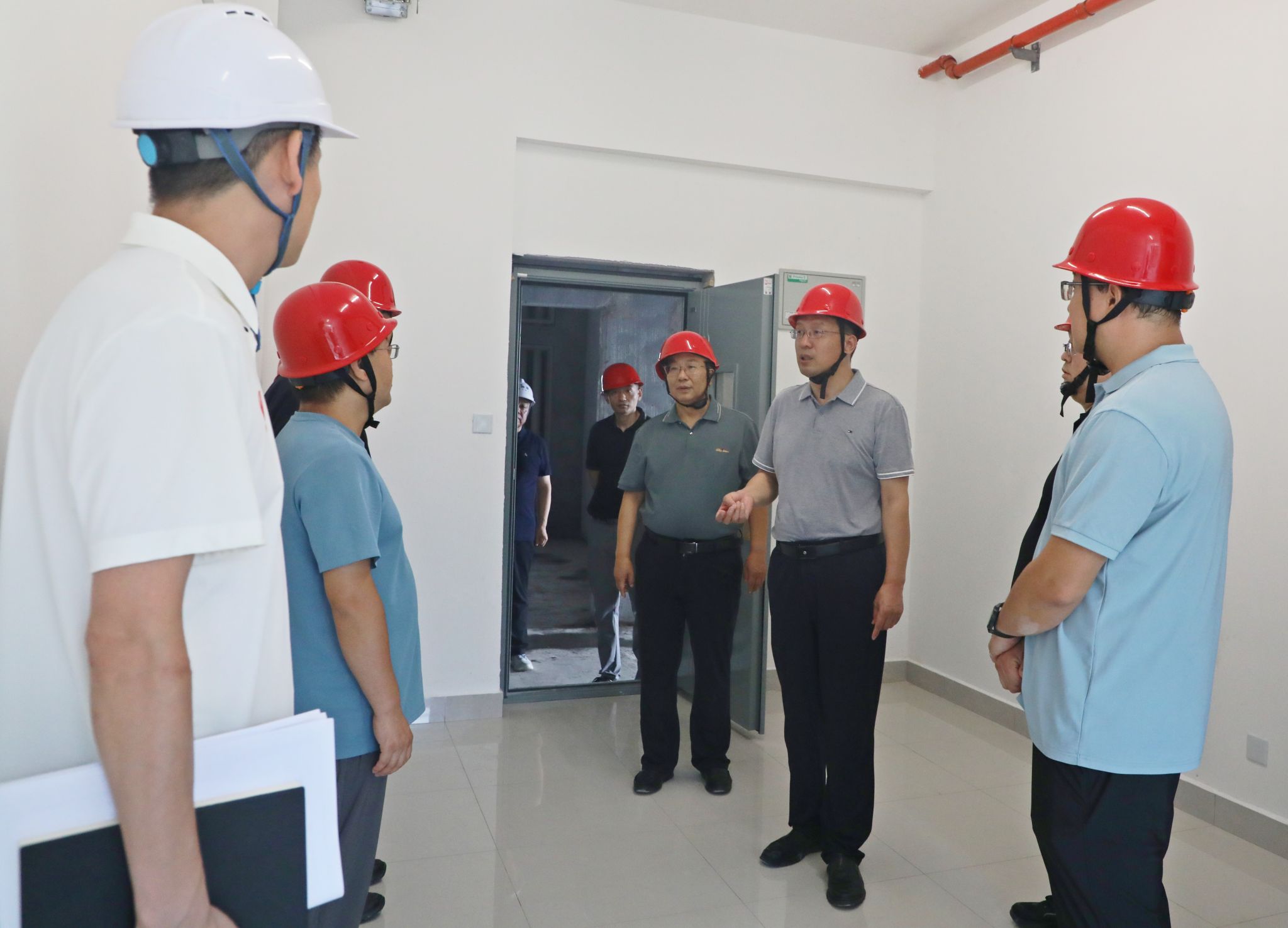 杨卫军一行详细了解了第12栋学生公寓项目的施工进度、材料质量及安全管理情况,检查了宿舍样板间瓷砖铺贴、门窗安装等装修效果,同施工方、监理方进行深入交流,提出优化和整改意见。
