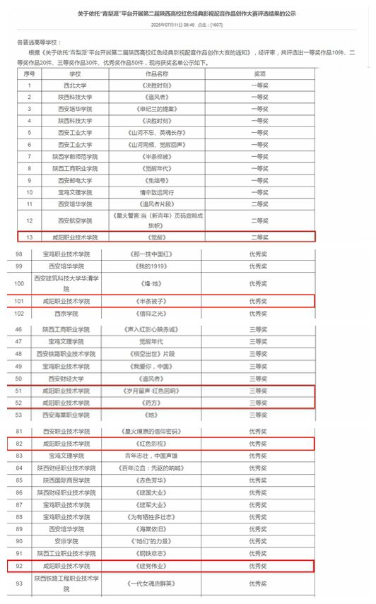 7月11日,陕西高校网络思想政治工作中心发文《关于依托“青梨派”平台开展第二届陕西高校红色经典影视配音作品创作大赛的通知》,公布了大赛评审结果。beat365英国官方网站宣传统战部报送作品斩获佳绩,荣获二等奖1项,三等奖2项,优秀奖3项。其中《觉醒》荣获二等奖;《岁月留声红色回响》《药方》获三等奖;《红色影视》《建党伟业》《半条被子》获优秀奖。