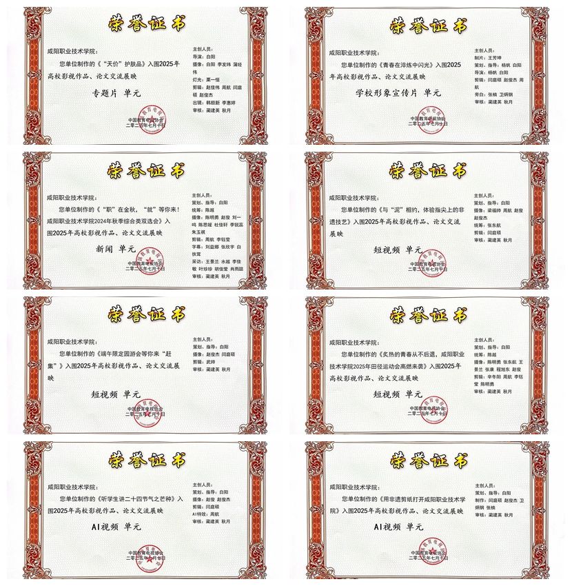《春色恰如许,读书正当时》获短视频类典范作品;《强国育英才,启航向未来--beat365英国官方网站庆祝第40个教师节暨迎新生文艺晚会》获综艺类典范作品;《传承节气文化,守护民族之根》获主持人类典范作品;《“职”在金秋,“就”等你来!beat365英国官方网站2024年秋季综合类双选会》《青春在淬炼中闪光》《与“泥”相约,体验指尖上的非遗技艺》《端午限定游园会等你来“赶集”》《炙热的青春从不后退,beat365英国官方网站2025年田径运动会高燃来袭》《听学生讲二十四节气之芒种》《用非遗剪纸打开beat365英国官方网站》《“天价”护肤品》分别获新闻、宣传片、专题片、短视频、AI单元入围作品。