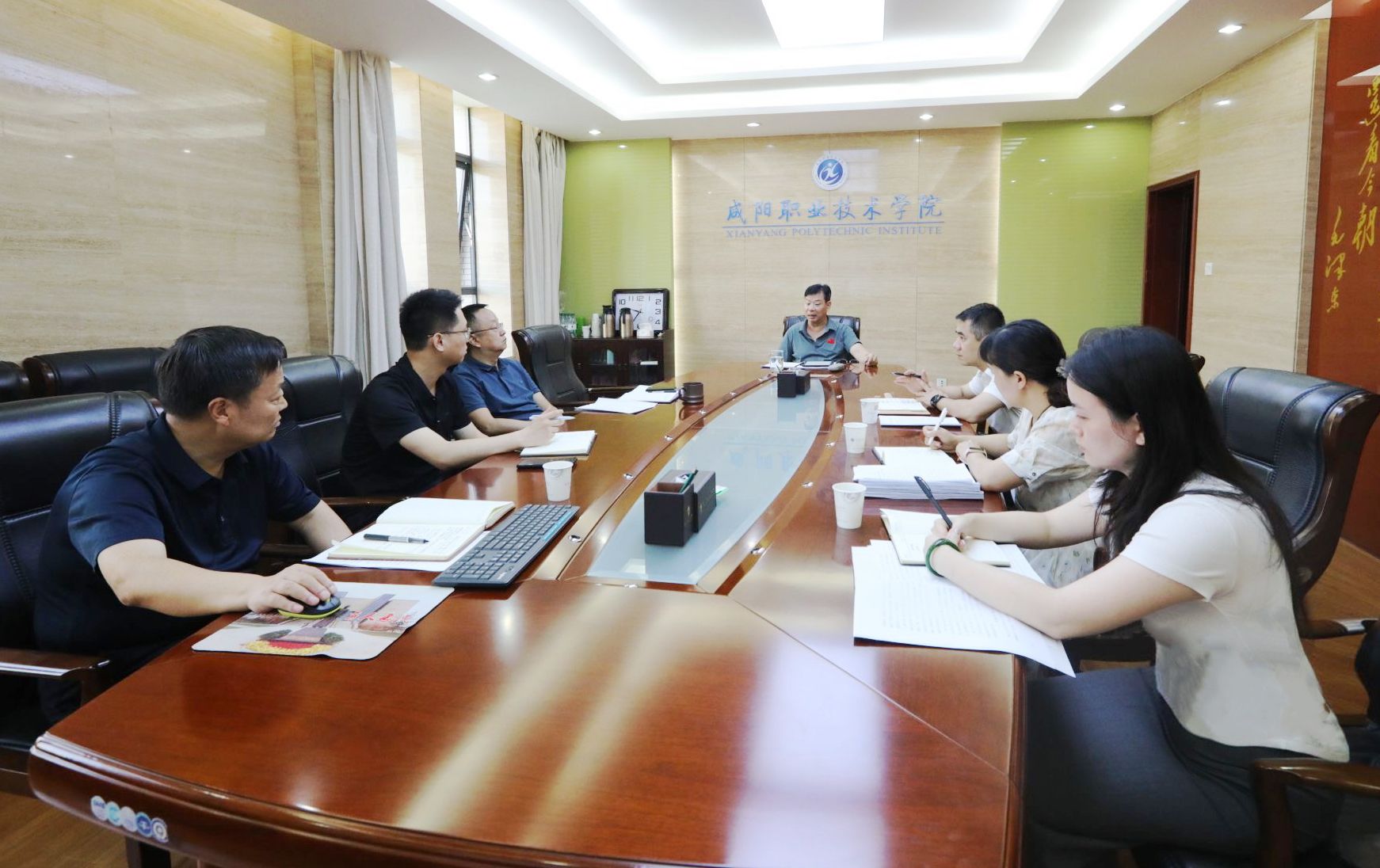 会议围绕学院年度目标责任考核、社会服务、产教融合、科学研究等领域,对近三年工作基本情况、现存问题、下一步工作思路、目标举措作了交流,与会人员针对工作重难点问题进行逐项研讨。