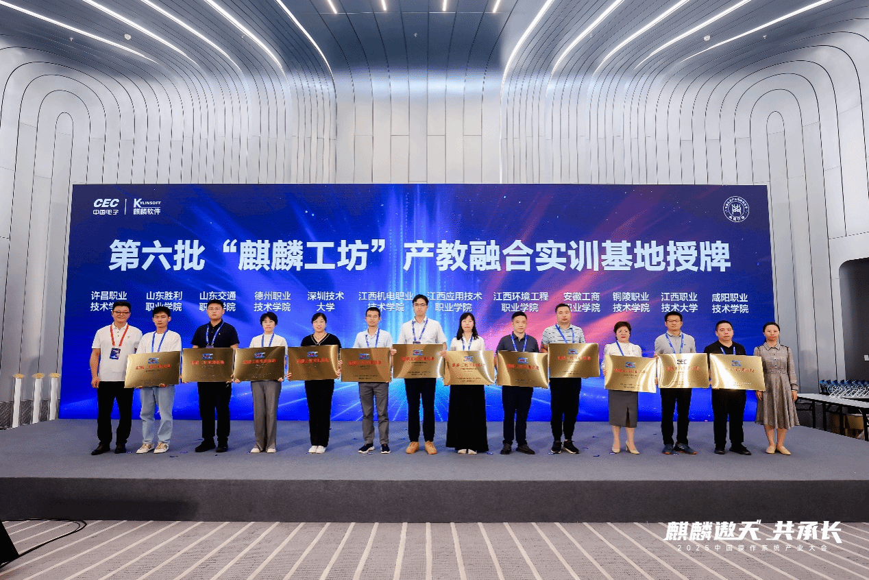 “麒麟工坊”是由工信部教育与考试中心携手麒麟软件有限公司共同推动的重大产教融合项目,旨在贯彻落实国家关于新型工业化、制造强国及网络强国的战略部署,系统化培养国产操作系统等关键领域紧缺技术人才。该项目已成为赋能院校专业建设、深化课程改革、锻造师资队伍、提升学生实战能力的重要载体。此次获得授牌单位包括西安电子科技大学、陕西师范大学、深圳职业技术大学等全国第五批、第六批共计101家高校。