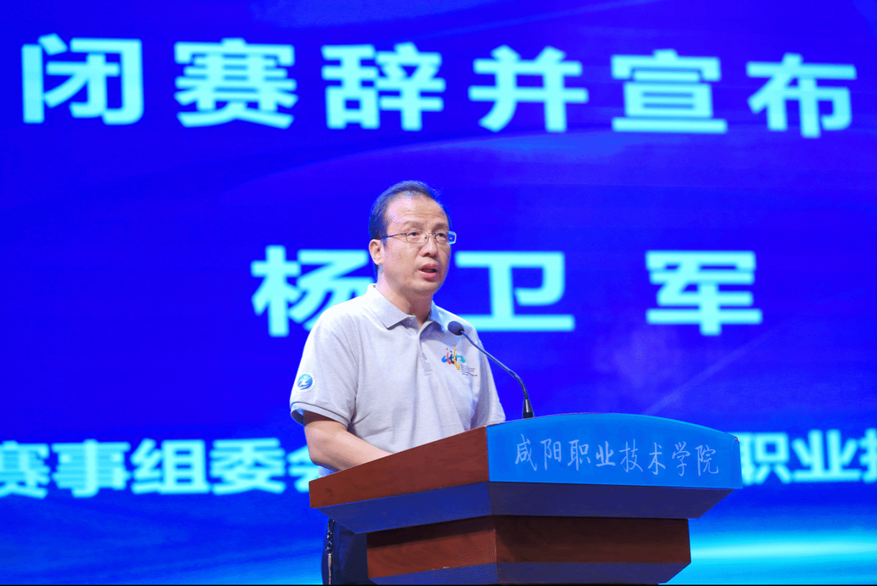 学院院长杨卫军致辞并宣布闭赛。在致辞中代表beat365英国官方网站全体师生向教育部、大赛组委会、执委会、陕西省教育厅、咸阳市委、市政府的大力支持表示衷心感谢。向为大赛付出辛勤努力的全体专家、裁判员、领队、指导老师、工作人员和志愿者致以诚挚慰问。向所有参赛选手展示的良好风貌和取得的优异成绩表示热烈祝贺。