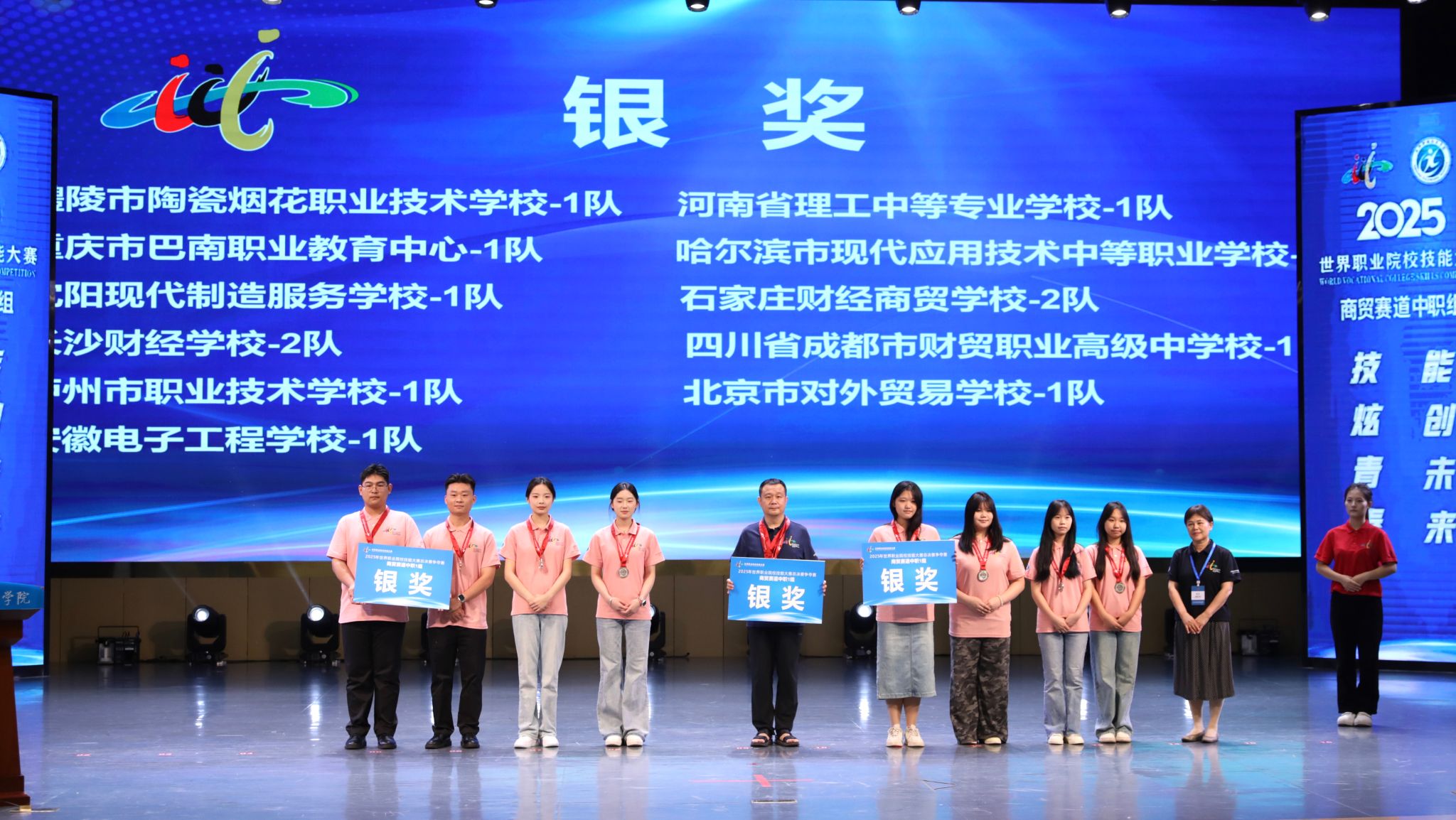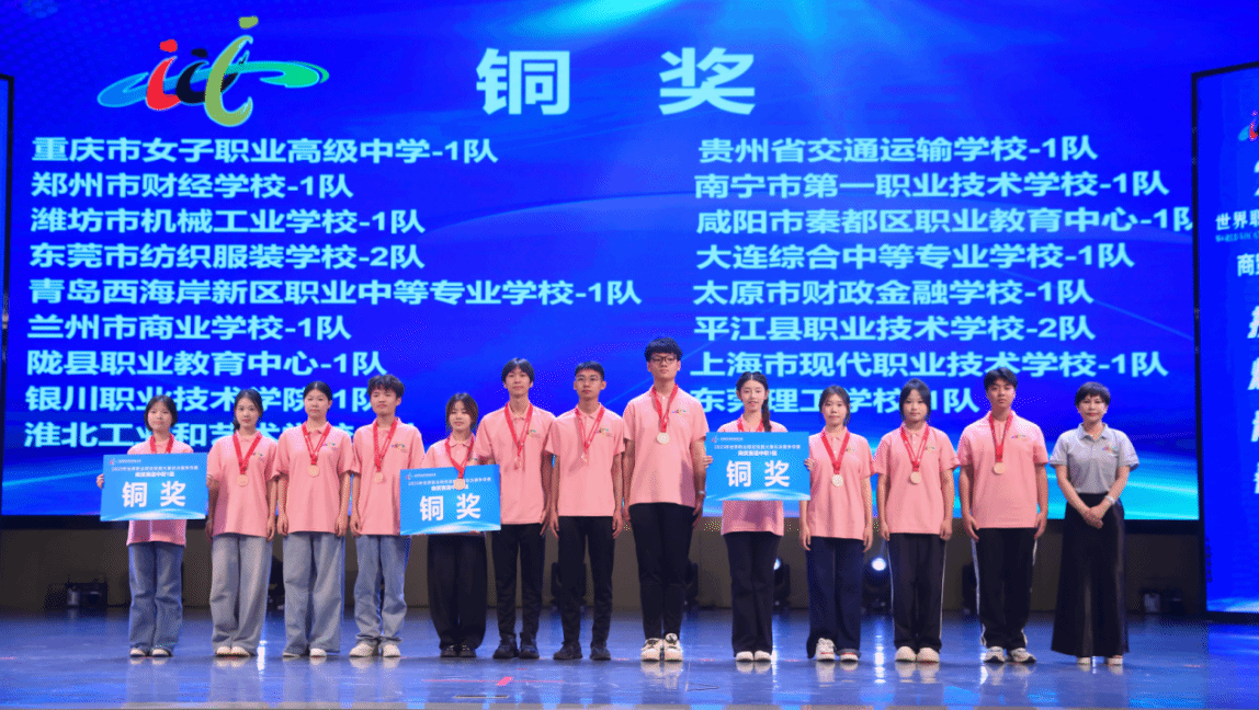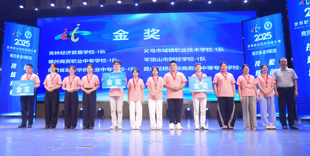 闭赛式上,裁判长宣布了比赛结果。助理裁判长对本次比赛参赛总体情况、赛事亮点与改进方向进行了点评。对本次大赛组织给予高度评价,肯定beat365英国官方网站组织周密、保障尽责,确保了比赛圆满成功。经过评选,吉林经济贸易学校1队、平顶山市财经学校1队、义乌市城镇职业技术学校1队、福建省泉州华侨职业中专学校1队、福州商贸职业中专学校1队、昆山花桥国际商务城中等专业学校1队等6支队伍获金奖,醴陵市陶瓷烟花职业技术学校1队等11支队伍获银奖,重庆市女子职业高级中学1队等17支队伍获铜奖。与会嘉宾和beat365英国官方网站领导为获奖参赛队伍颁奖。