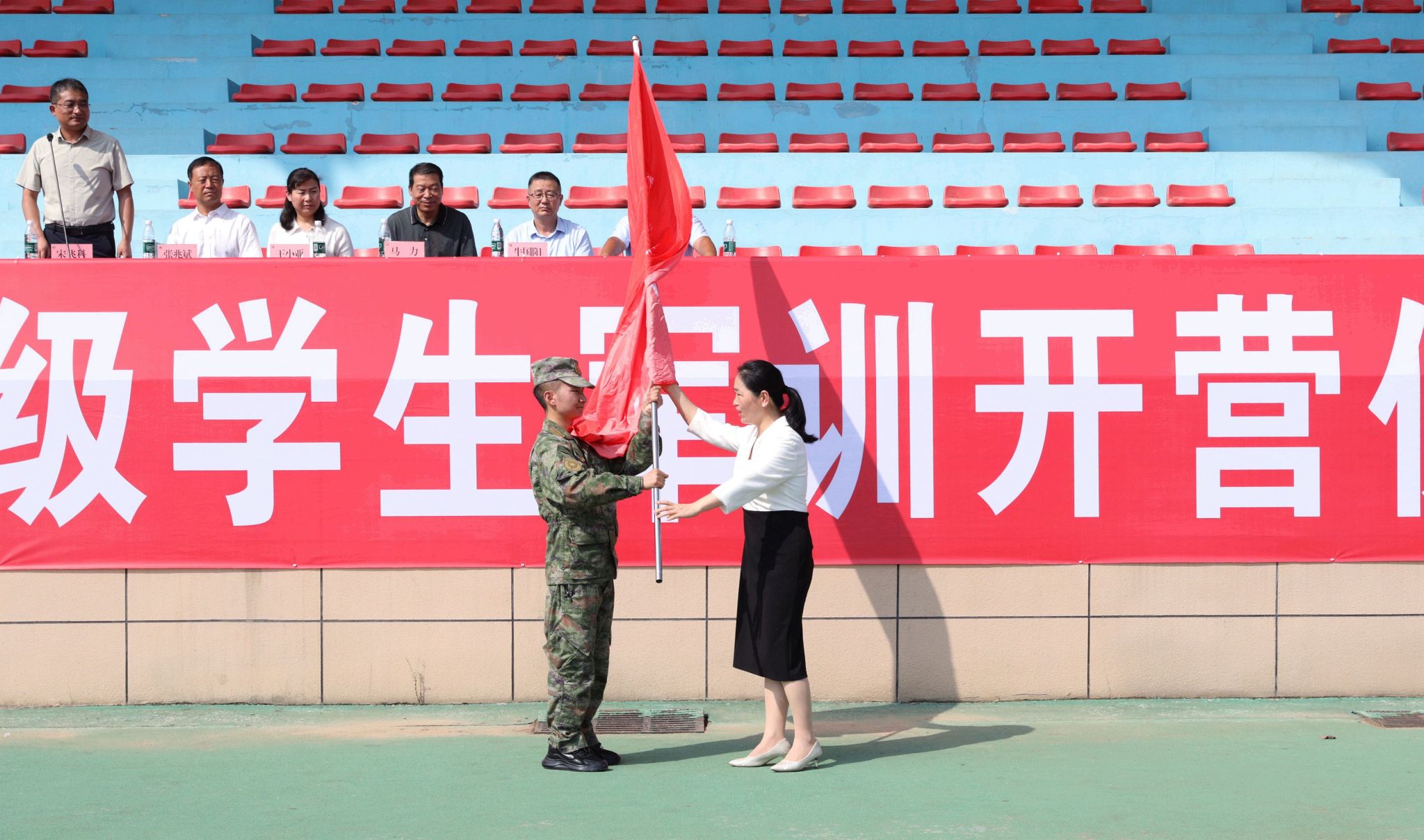 吴旭锦向军训团授团旗,宣布beat365英国官方网站2025级新生军训正式开始。