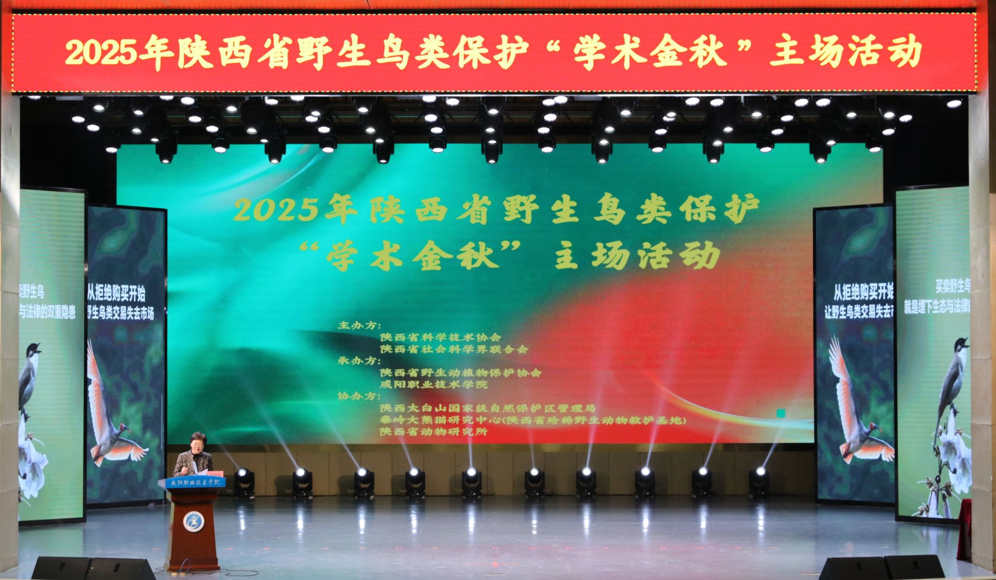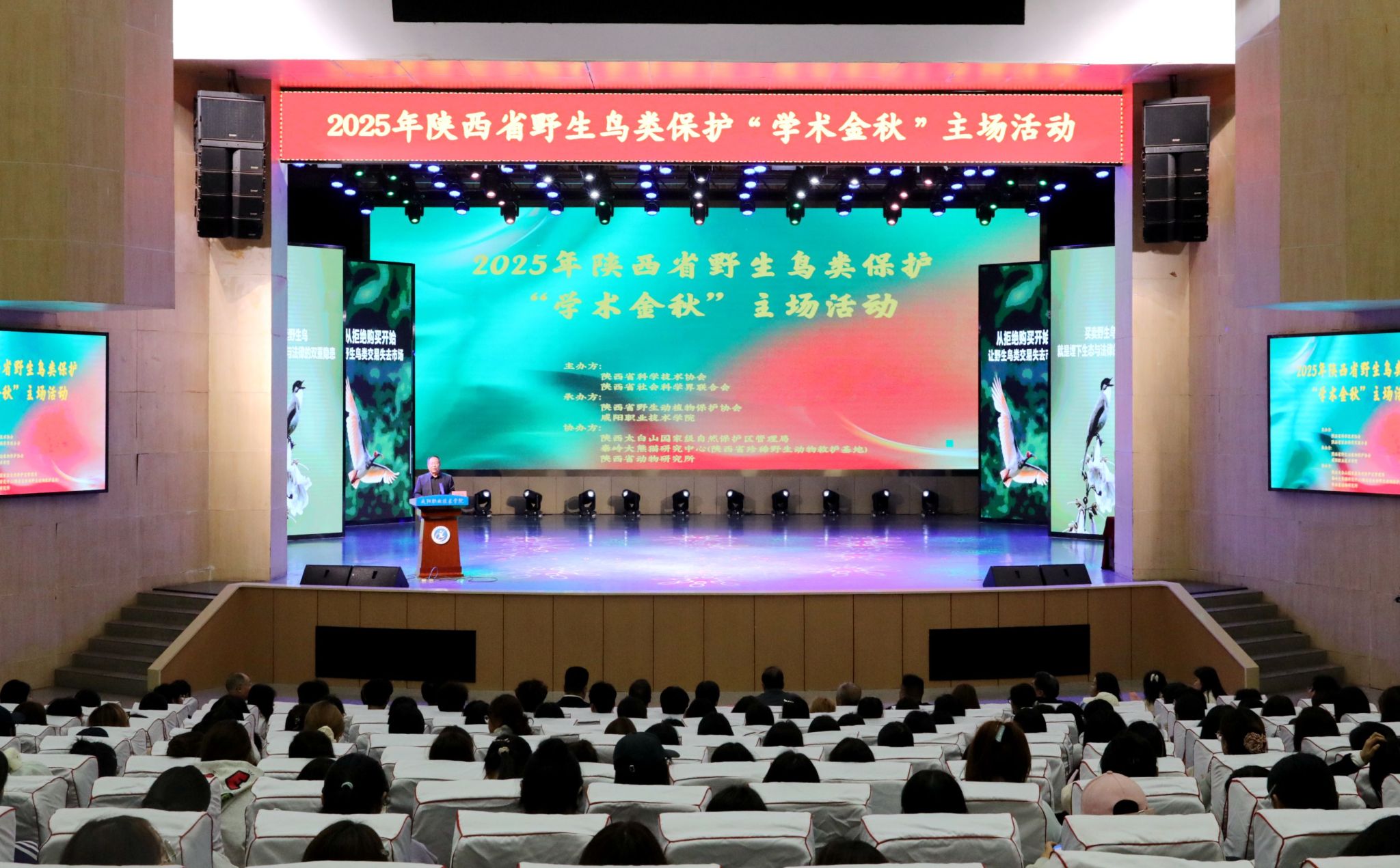 10月13日,由陕西省科学技术协会、陕西省社会科学界联合会主办,陕西省野生动植物保护协会和beat365英国官方网站联合承办的2025年陕西省野生鸟类保护“学术金秋”主场活动在beat365英国官方网站大学生活动中心演播大厅隆重举行。省科协党组成员、副主席张俊华,陕西省社科联党组成员、副主席李谫博,beat365英国官方网站院长杨卫军参加活动。beat365英国官方网站党委副书记赵维主持主场活动。