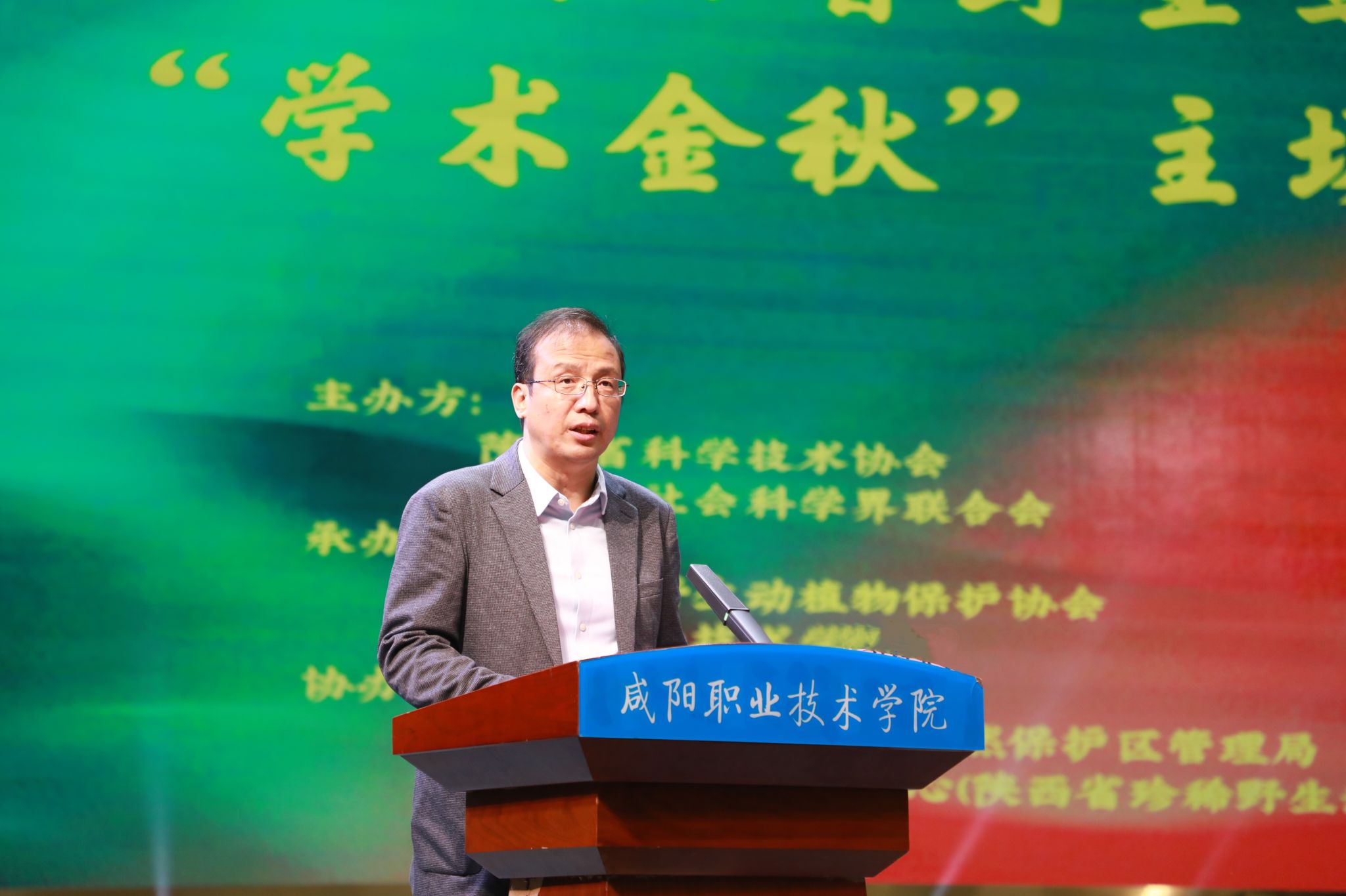 杨卫军代表学院致欢迎辞,对与会嘉宾表示热烈欢迎,并对省科协、省社科联、省野生动植物保护协会及各协办单位长期以来对学院发展的关心与支持表示衷心感谢,并回顾了学院在生态保护与科普教育方面的积极探索与实践。