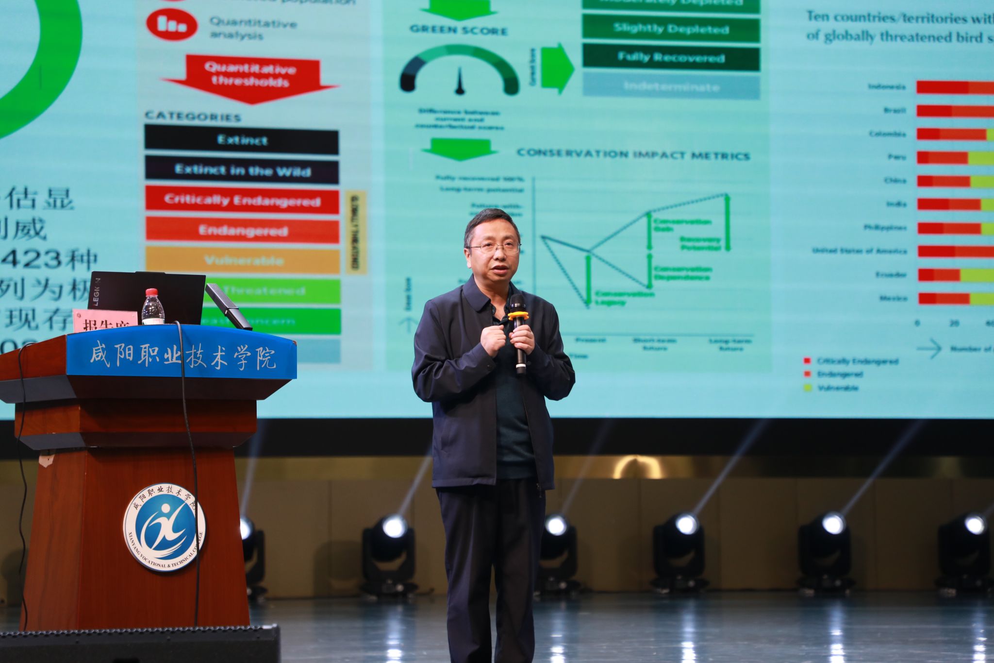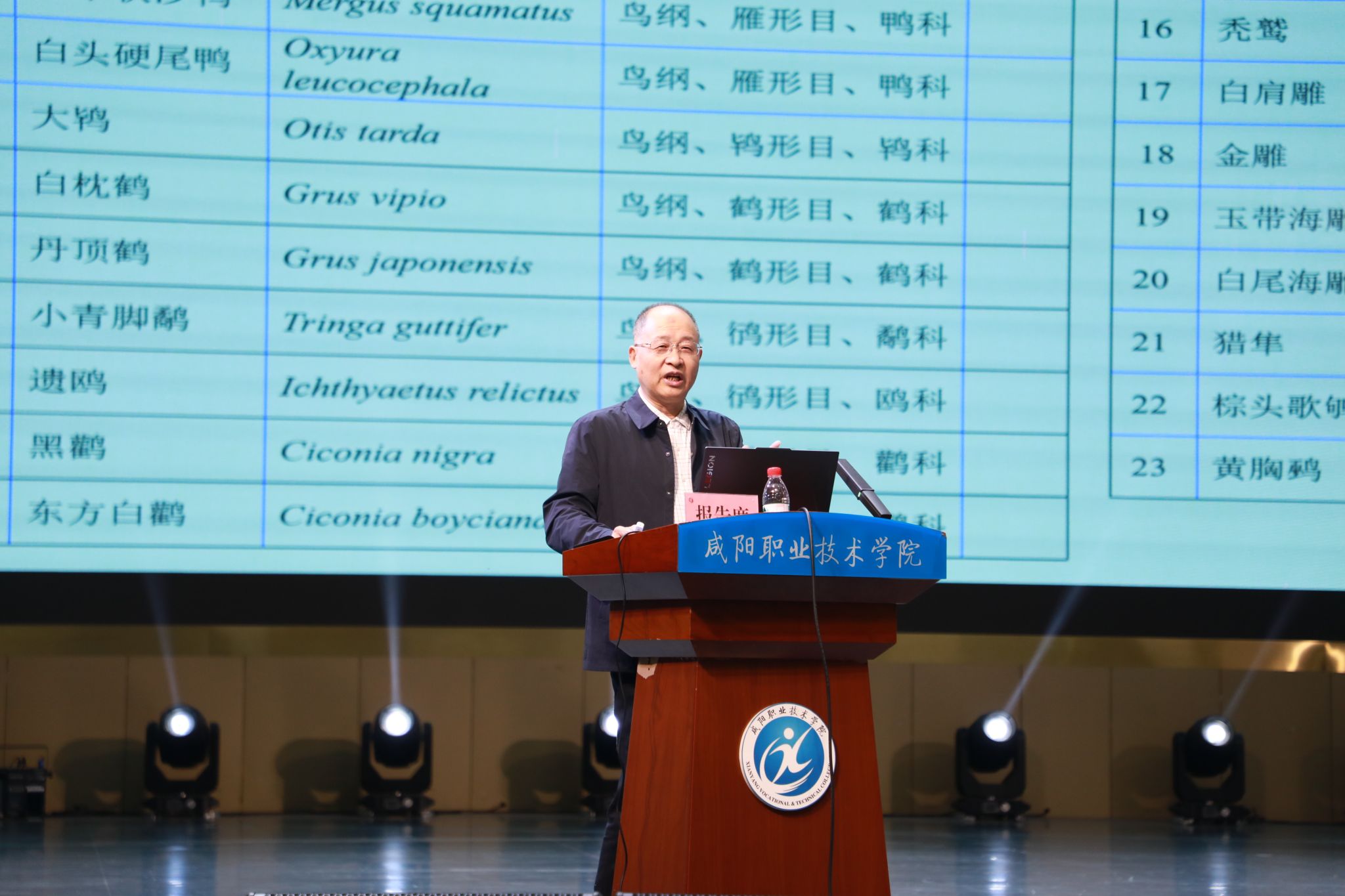 主旨报告环节由陕西省野生动植物保护协会秘书长、陕西太白山国家级自然保护区管理局副局长张智锋主持。陕西省动物研究所研究员王开锋以《陕西重点保护鸟类》为题,系统介绍了我省重点保护鸟类的种类特征、分布状况与保护实践,为在场师生搭建起对陕西鸟类资源的整体认知;秦岭大熊猫研究中心(陕西省珍稀野生动物救护基地)博士、高级工程师董荣则以《“东方宝石”的涅槃——朱鹮保护案例对濒危野生鸟类保护的启示》为题,通过朱鹮从濒危到繁衍生息的保护实践,深入剖析濒危野生鸟类保护的关键策略与经验,为同类物种保护提供了宝贵参考。