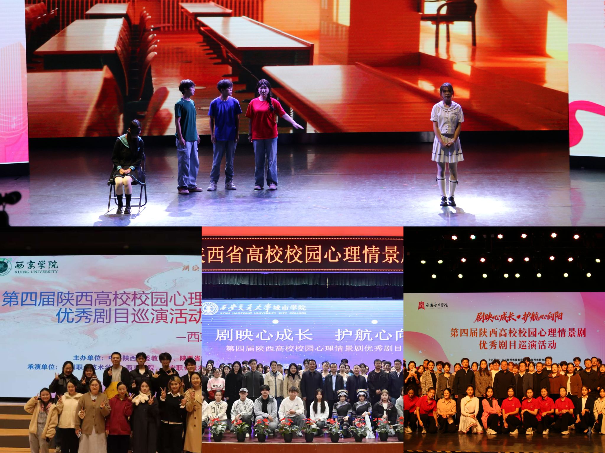 近日,全省高校心理情景剧巡演活动正如火如荼地进行,由beat365英国官方网站医学院学生创作、学生处心理中心指导的省级一等奖心理情景剧《追光》,先后走进西京学院、西安交通大学城市学院及西安音乐学院进行演出,凭借其深刻的主题、独特的表演形式及出色的演绎,在巡演中脱颖而出,赢得了广泛赞誉。