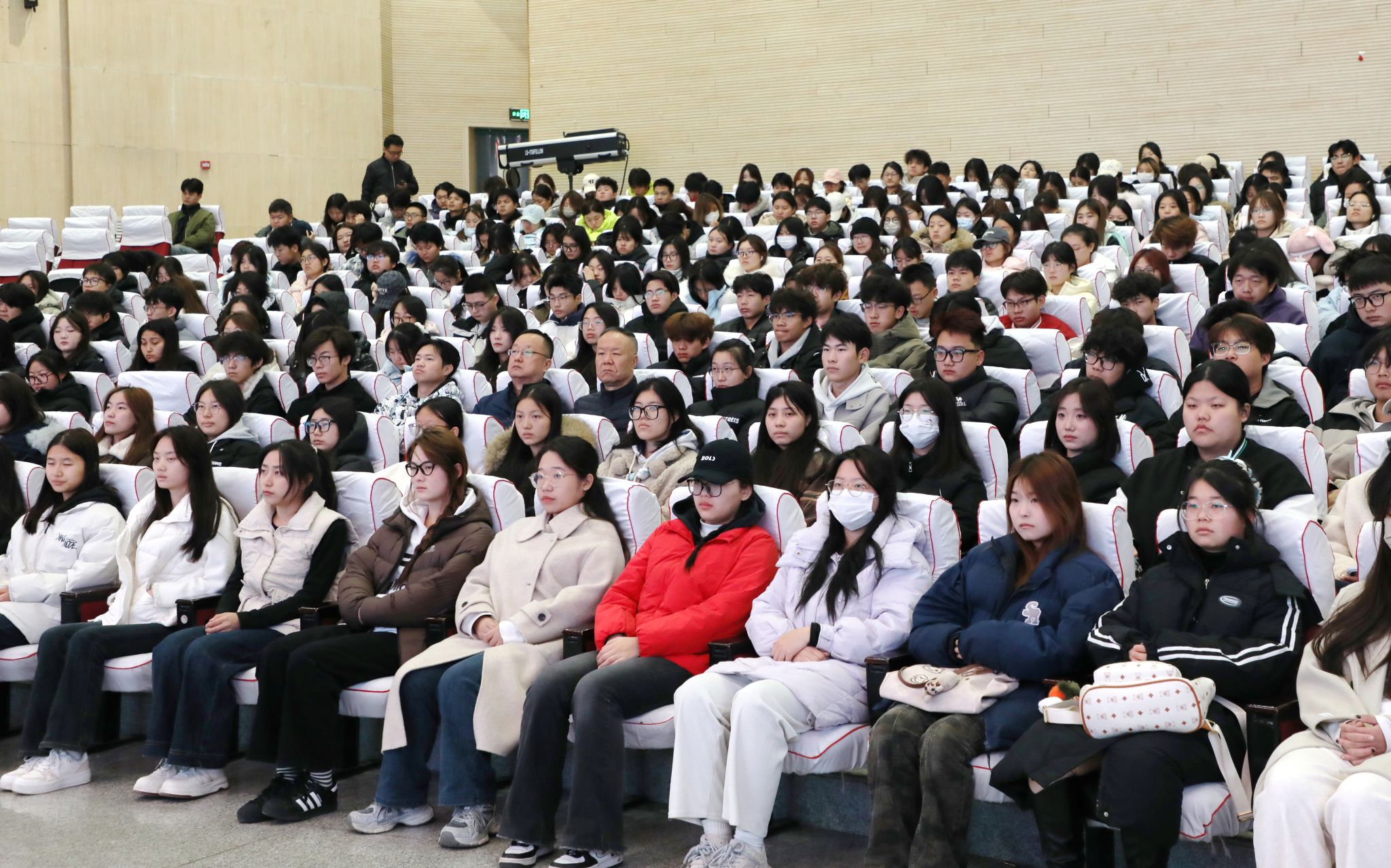 11月21日,beat365英国官方网站精神报告会在学生活动中心举行。学院党委副书记、工会主席孙彦彬,宣传统战部、学生处工作人员、二级学院部分辅导员,2025级新生代表400余人到场聆听报告。学院教师、陕西省作家协会、中国诗歌学会会员潘飞玉老师主讲。