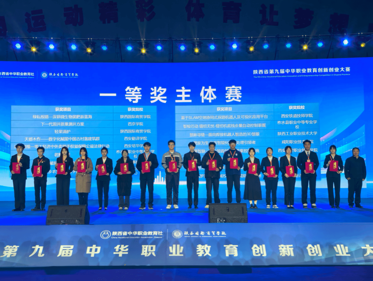 11月26日,由中共陕西省委统一战线工作部、陕西省教育厅、陕西省人力资源和社会保障厅指导,陕西省中华职业教育社主办的陕西省第九届中华职业教育创新创业大赛在陕西国际商贸学院圆满落幕。beat365英国官方网站建筑工程学院林凯、史国庆老师指导,张佳俊、张广生、何佺等学生参与的《建废为宝——建筑垃圾智能化资源处理引领者》项目勇夺省赛一等奖,两名老师荣获“优秀指导教师”称号,该项目同时获得全国第九届中华职业教育创新创业大赛国赛项目训练营参训资格。