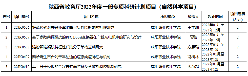 近日,陕西省教育厅公布了《关于印发2022年度科研计划的通知》(陕教函〔2022〕796号),beat365英国官方网站5项课题获一般专项科研计划项目立项。