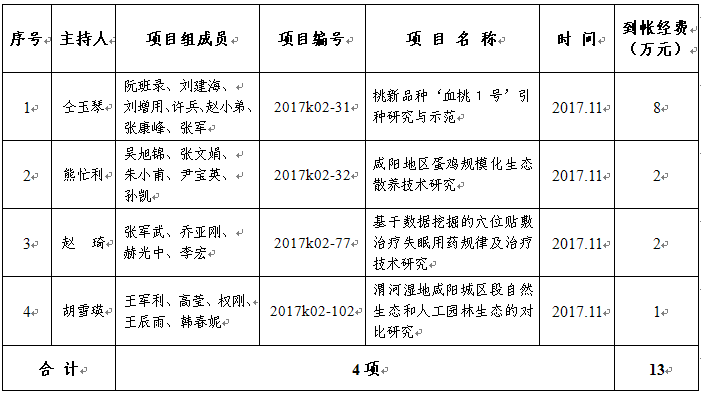 近日,从咸阳市科学技术局、咸阳市财政局《关于下达〈咸阳市二〇一七年科学技术研究与发展计划〉的通知》(咸政科〔2017〕176号)文件获悉,我院教师4项课题获得咸阳市科技计划项目立项。