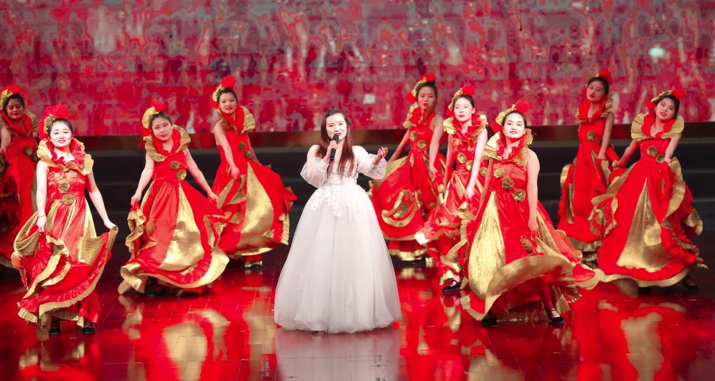 演出在歌伴舞《祖国万岁》中拉开序幕,以舞寄情,用翩跹舞姿呈现春风化雨、国富民强的时代画卷。《没有共产党就没有新中国》《走进新时代》《歌唱祖国》等合唱歌曲,以歌颂党,用嘹亮的歌声礼赞党的百年征程,诠释初心永恒。《我把最小的娃娃送上了战场》《因为有你》《我骄傲我是中国人》等配乐诗朗诵,以诵言志,用诚挚的语言、饱满的情感赞颂共产党人的崇高信仰,追溯建党百年的光荣历史。《我爱你中国》模特秀表演,老年大学成员以饱满的热情翩翩起舞,为建党100周年献礼。演员们精神饱满、全情投入,用精彩的演出,为师生们上了一堂生动的“党史课”。演出在全体师生共唱《没有共产党就没有新中国》的嘹亮歌声中圆满落幕。
