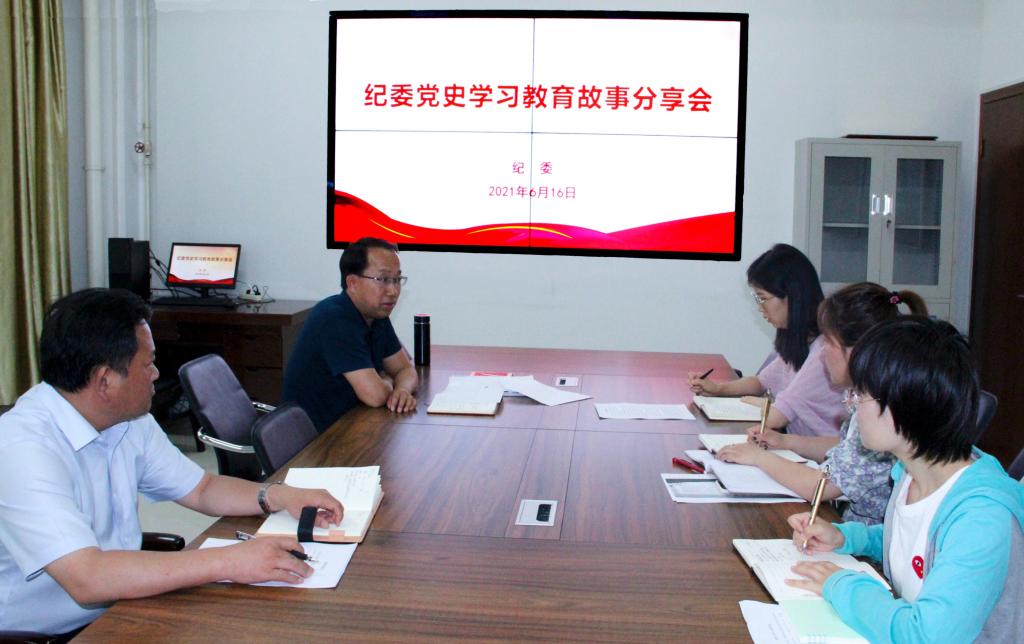 为大力宣传党的发展历程,发挥党史滋养初心作用,坚定理想信念,6月16日,纪委召开党史学习教育故事分享会。全体党员结合自己党史学习情况,讲授党史故事,分享学习收获。