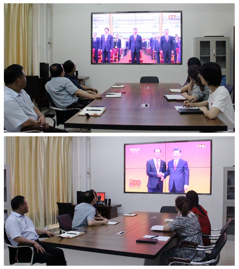 6月29日上午,纪委党支部组织全体党员收看庆祝中国共产党成立100周年“七一勋章”颁授仪式现场直播,并认真组织学习习近平总书记在颁授仪式上的重要讲话。
