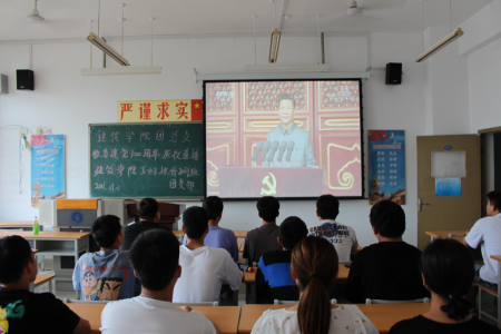 庆祝中国共产党成立100周年大会7月1日上午8时在北京天安门广场隆重举行。中共中央总书记、国家主席、中央军委主席习近平发表重要讲话。建筑学院全体教职工和学生党员在JX401集中组织观看实况直播。