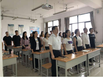 建筑学院全体教职工和学生党员起立唱国歌