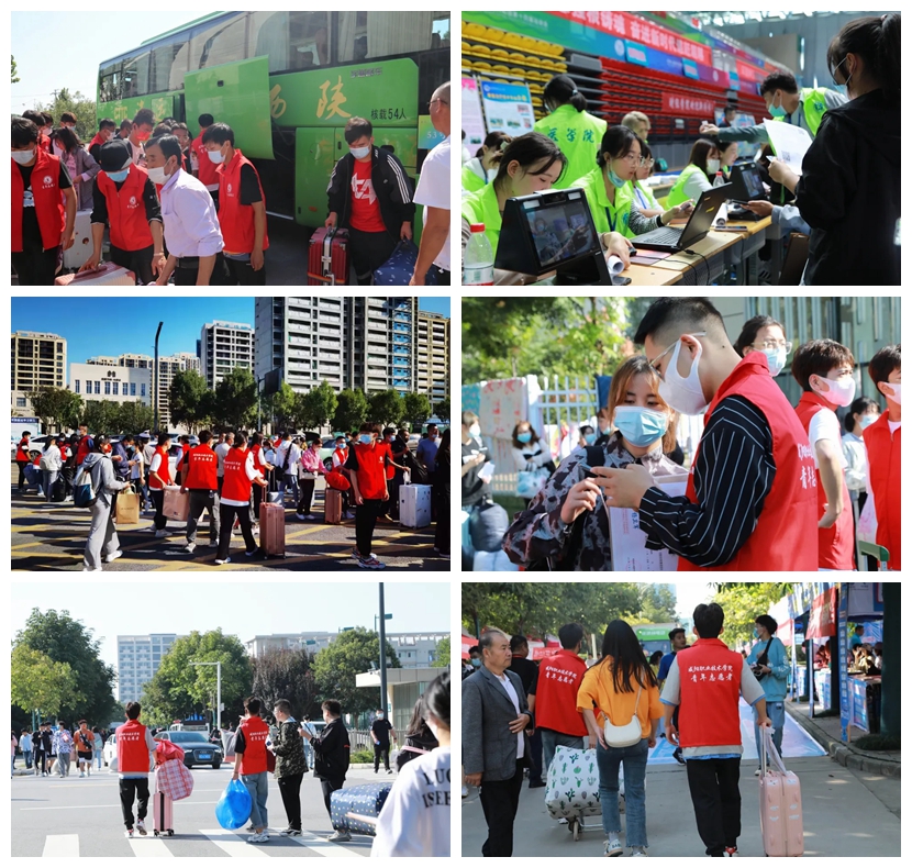 9月21日,迎新生工作正式开启,伴随清晨的第一缕阳光,230名志愿者带好防护物资、引导牌奔赴咸阳火车站、汽车北站、沣河地铁站等3个校外交通站点,全力迎接新生入学,先后通过大巴车迎新近2000人。