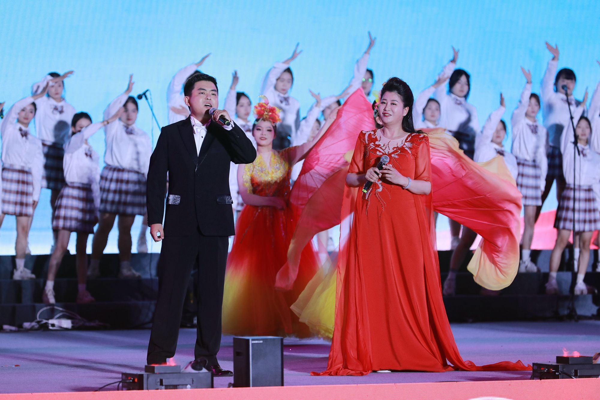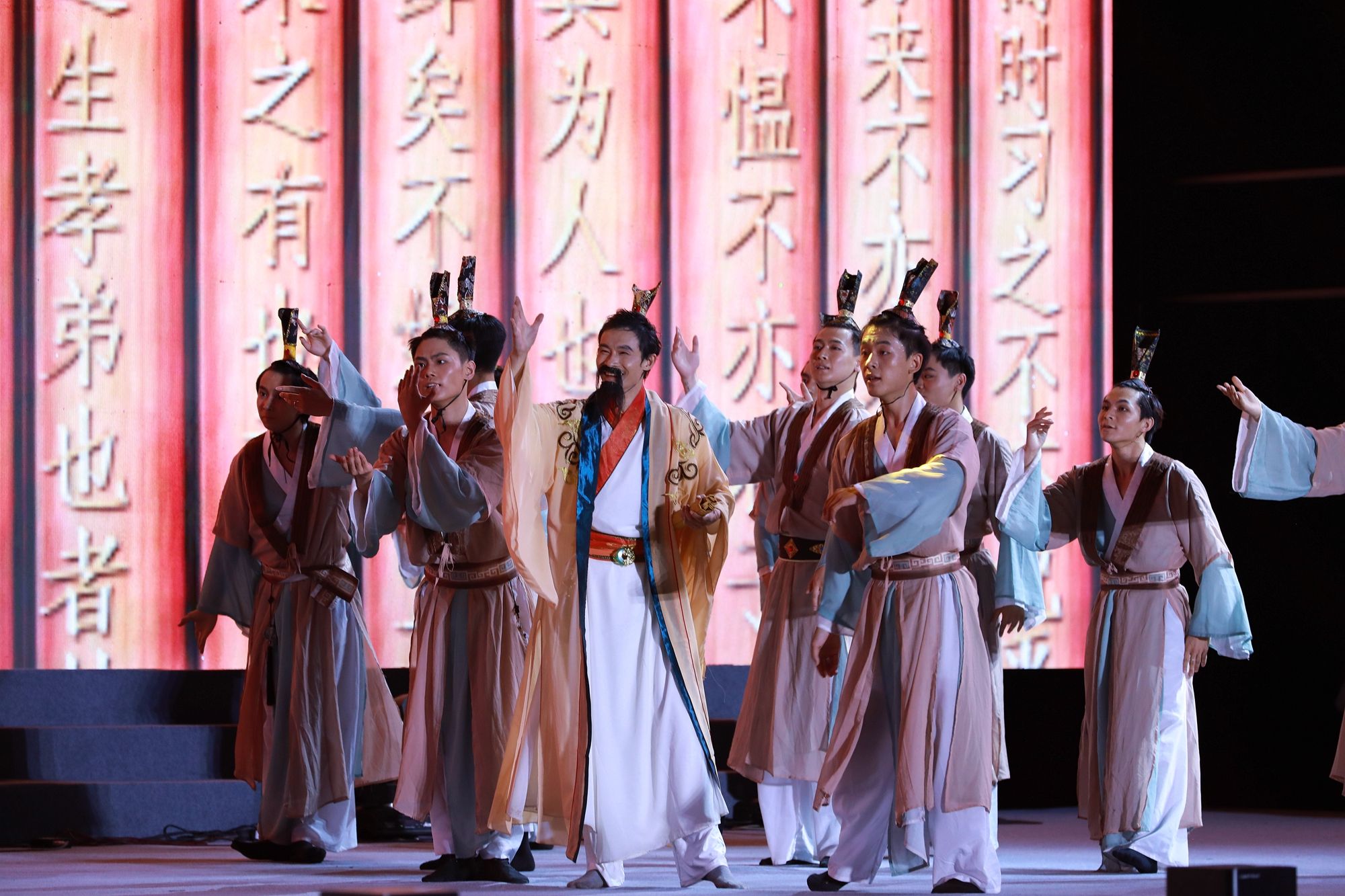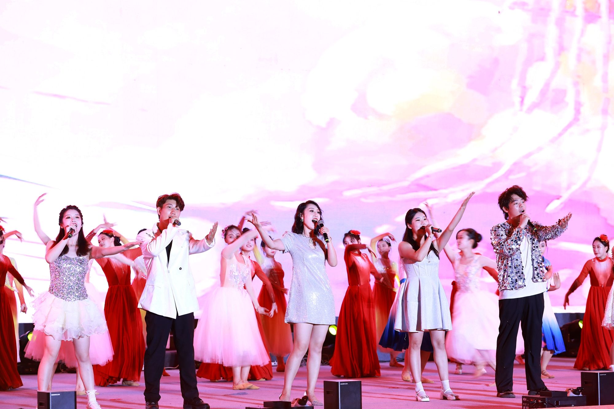 学院300余名师生用精彩的节目,细致的演绎,为广大教师及在场观众带来一场秋日的文艺献礼。演出在歌舞《一起来,更精彩》中拉开序幕,以欢快的节奏和动感的舞步,展现了教育事业的勃勃生机与无限可能。节目《出口成章》《变脸》以幽默诙谐的语言和生动的表演,赢得了观众们的阵阵笑声。《花开新时代》《征途》《剪花娘子》《孔子》等舞蹈,以舞寄情,用翩跹舞姿呈现春风化雨、尊师重教的社会风尚。《瑶族舞曲》《龙卷风》《让青春点亮未来》等歌曲,以歌颂情,汲取奋进力量,奏响全国文明校园的和畅之声。演出在合唱《老师我想你》的深情歌声中圆满落幕,用热烈的掌声和欢呼声向辛勤耕耘在教育一线的老师们致以最崇高的敬意。